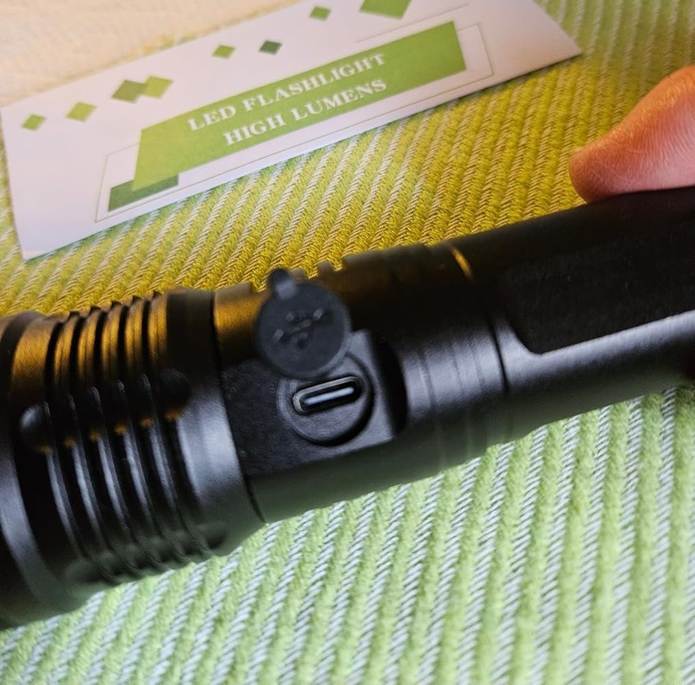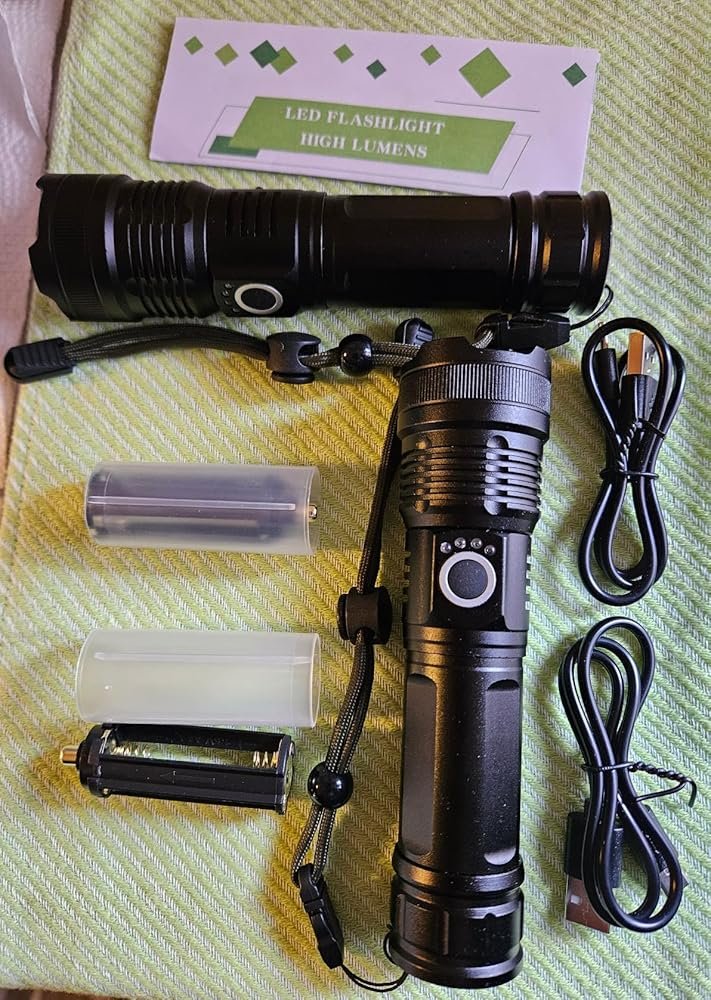 - Super Bright Flashlight: Rechargeable flashlights high lumens are equipped with an upgraded bright LED chip with a maximum output of 990,000 lumens. So the flashlight can provide you with 1000 square feet of lighting area or 1200 feet of lighting distance, suitable for home, emergencies, camping, hunting and outdoor, meet your various lighting needs.