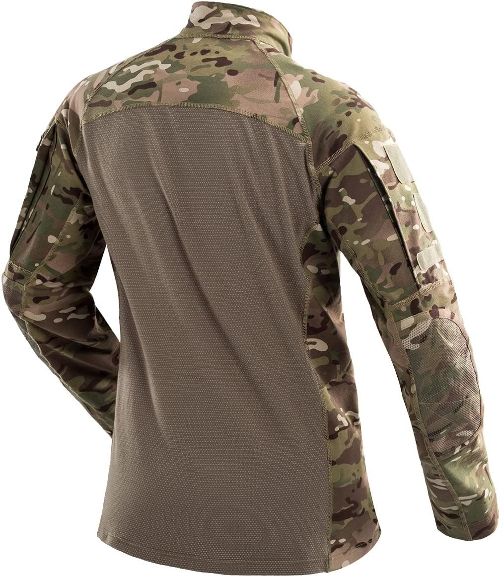 CARWORNIC Gear Men’s Tactical Military Combat Shirt Cotton Stretch Army Camo Long Sleeve T Shirt with 1/4 Zip