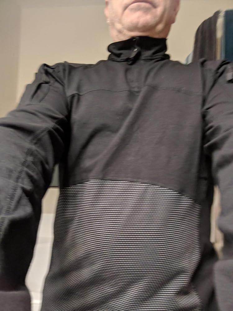 - 1/4 front zip closure; Long sleeve with zippered arm pockets; Large patch for individuality patches; Hook & loop adjustable wrist cuffs; Strengthen elbow protection