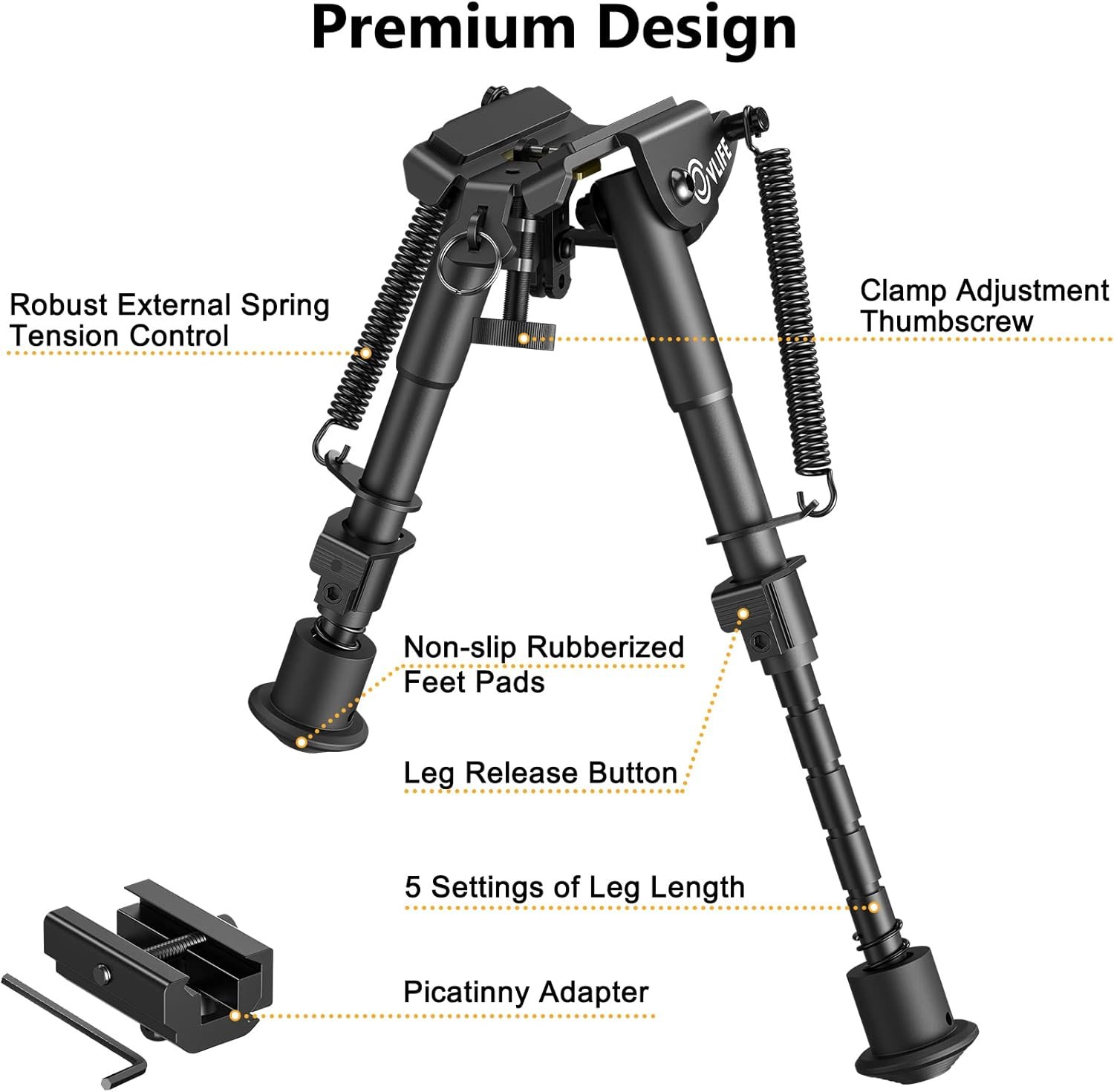 CVLIFE 6-9 Inches Picatinny Bipod Adjustable Spring Return with Picatinny Adapter