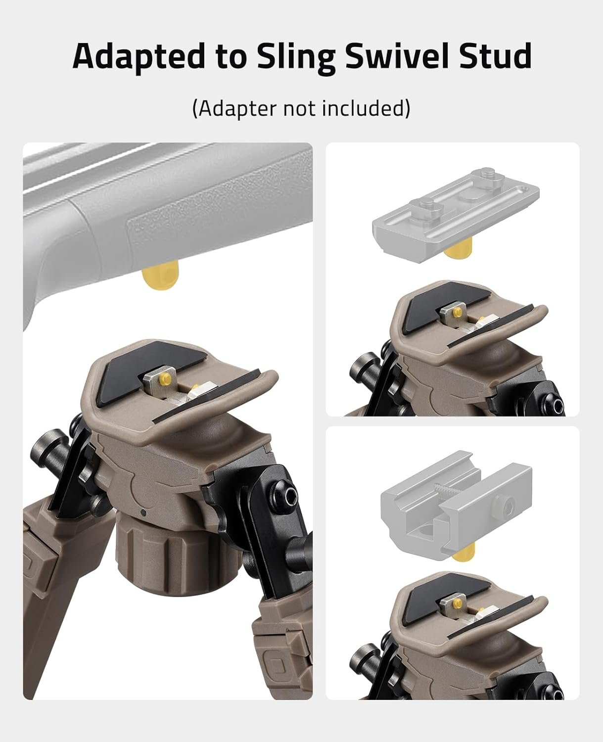 - Anti-Slip: The bipods for rifles with anti-slip rubber feet that can preload reasonably well in severe environments and provide a stable shooting platform. Notice: Adapter not included.Applicable for sling swivel stud rifle