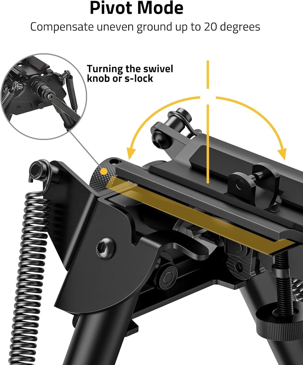 CVLIFE Rifle Bipod with Pivot Tilt, Swivel Stud, and Detachable S Lock Lever for Stability and Target Shooting