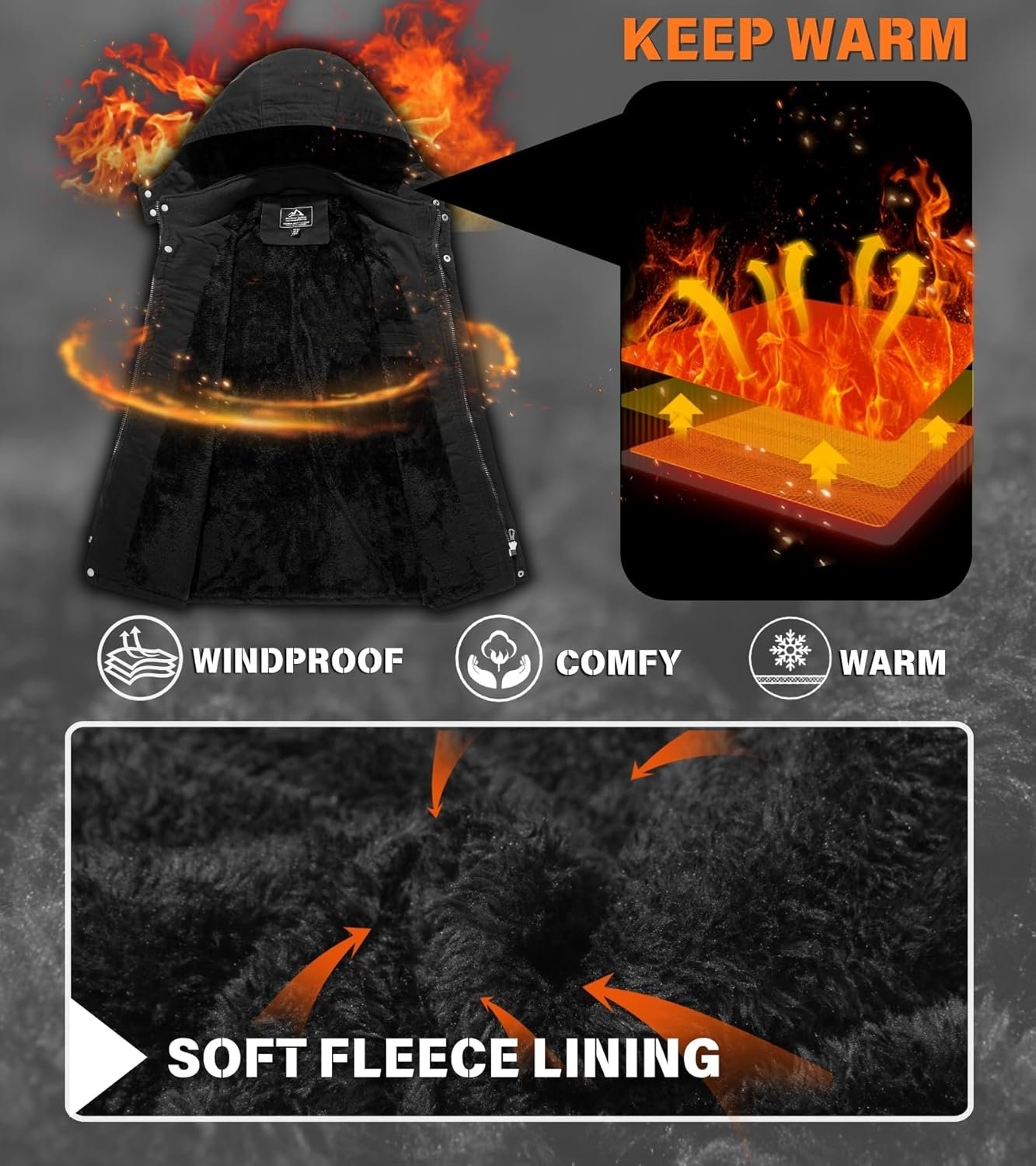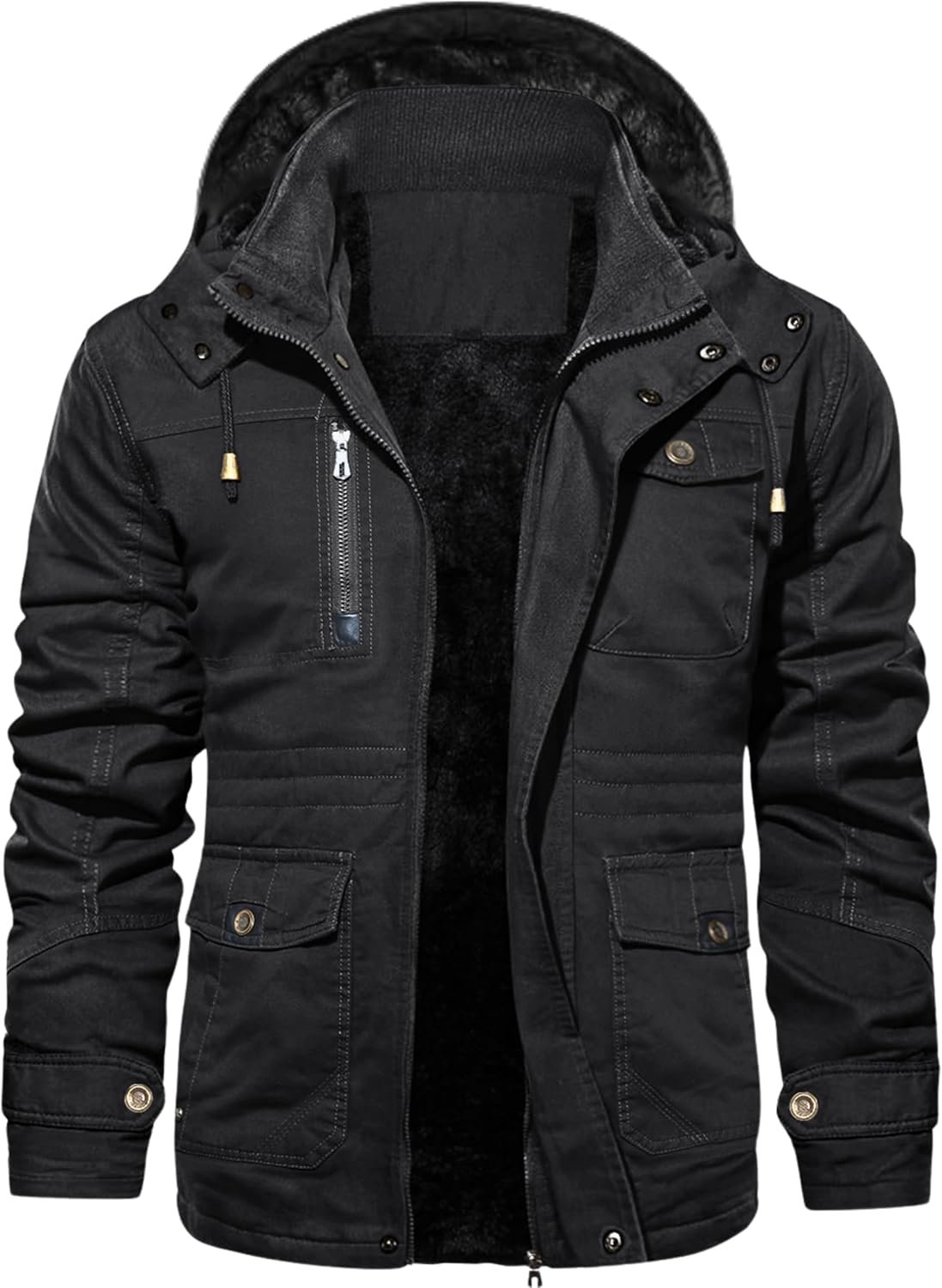 - Fleece Lining: The shell of men’s winter jacket is made of cotton, the inner lining is soft and thick fleece lining, high quality fabric can keep you warm and comfortable in cold weather