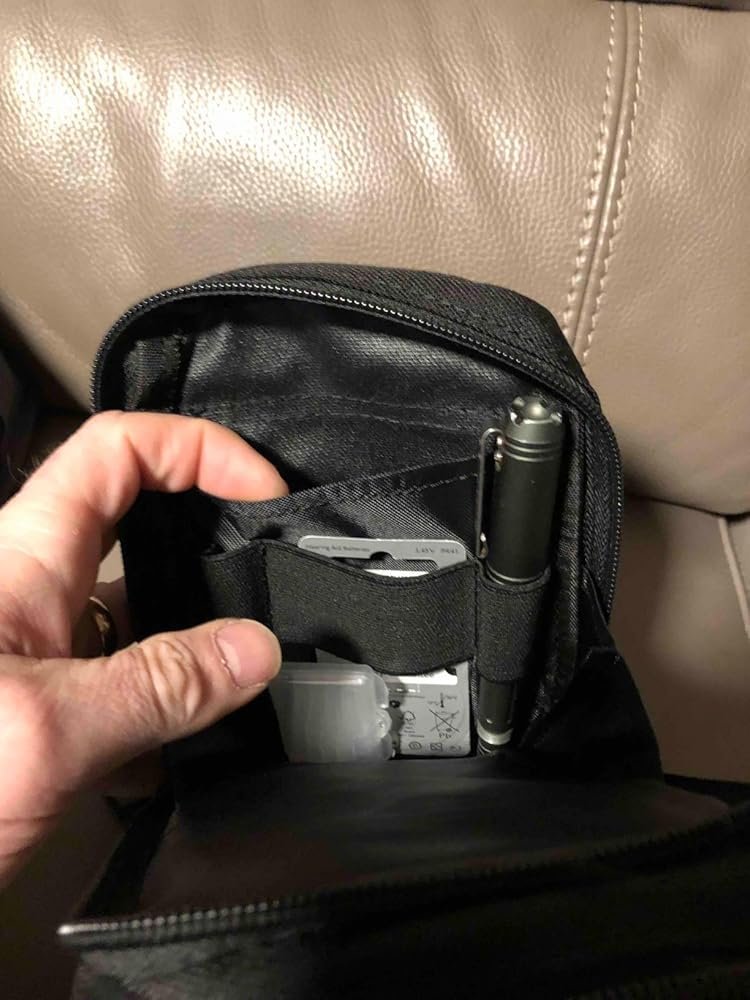 I use reviews like these to purchase products that are unknown so I give it to you straight.I haven’t used it a lot yet. It does fit my iphone 8Plus with a thin case and pop socket with out problem. And I like the fact that flap covers the phone.Inside the zippered pocket closest to the phone is a nylon piece making an extra pocket. With my phone in the very front, that pocket is totally useless. Attached to it is a 2″ stretch band that has two pen holders & a middle section. I wish there was a pen holder on the outside so it would be easier to grab, but I really like the configuration of the elastic. They should have left out the nylon piece and put the band directly to the material and put one on the other side. I also really like the fact that they have accordion flaps to help open the main front pocket.The material that is used to separate the two main compartments feels cheaper to me than that of the Unigear bag that is at a lower price point. I will see how the two hold up compared to each other. The unigear bag also has a metal clip in the rear pocket for keys or other small things you want to hang for quick access. I wish this bag had the same.The strap is thin, but strong. My wife commented it made the bag look like a purse when I used it 🙁 I would also like if they added a carabiner hook at the top back of the bag so i could just snap it on something when I am in a hurry.Over all this bag is more versatile than the 3 others I purchased. It is also a little bit larger. If they added the few other features I mentioned I think it would be worth the higher price point than the other bags.
