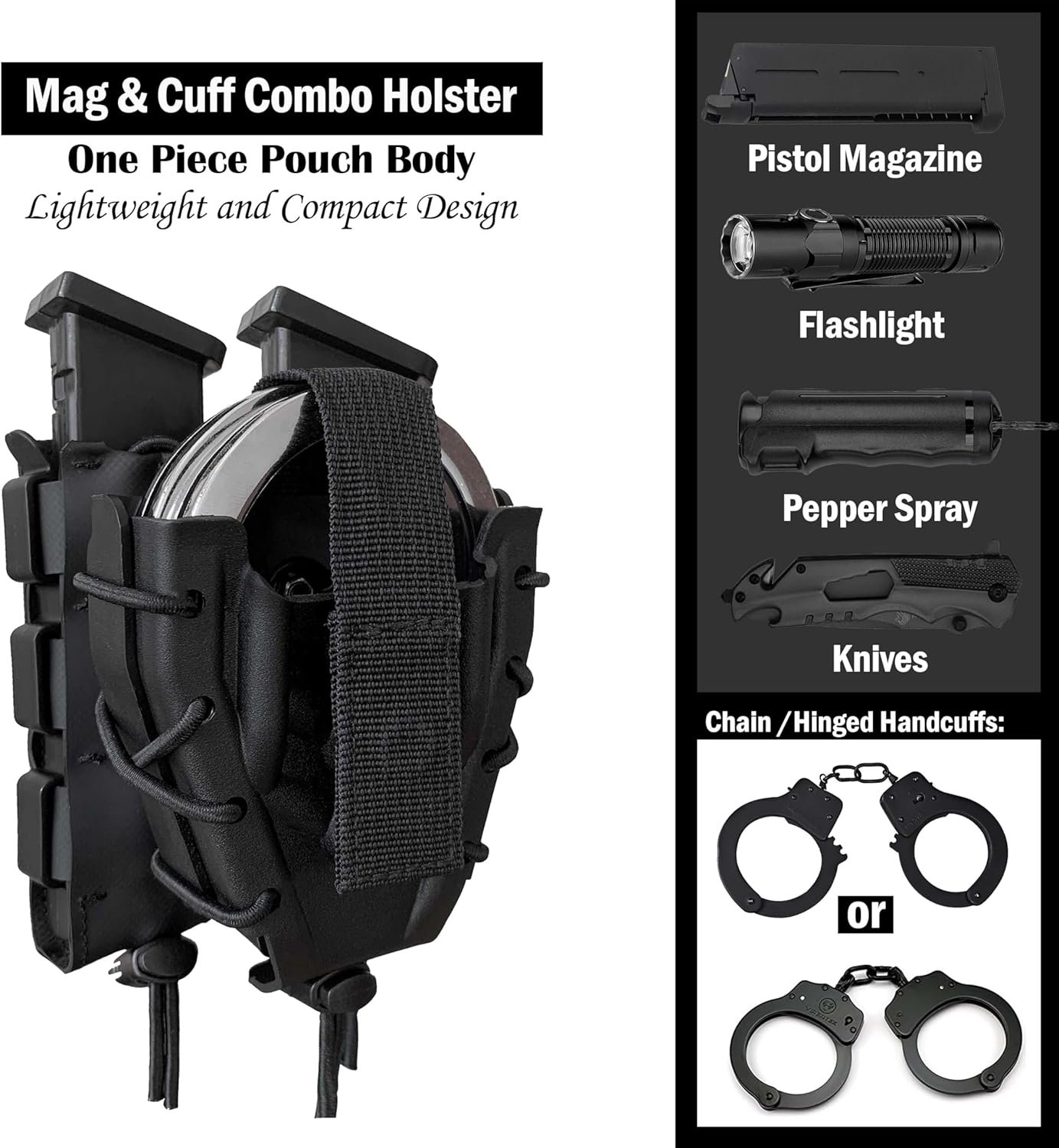- Holds 2 magazine and 1 pair of handcuffs.