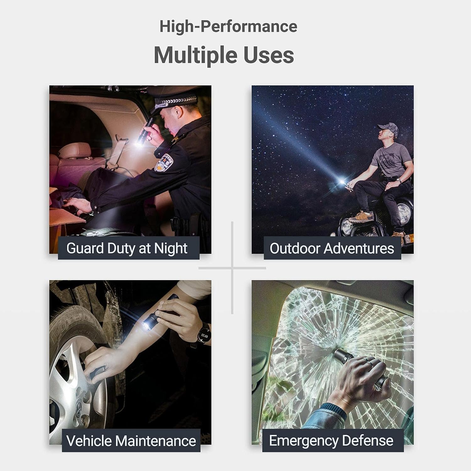 - Multi-functional unique design: NEXTORCH rechargeable flashlight patented design, double side press switch, a key burst flash and mode switching, matching different needs. 1600 lumens (300 meters), 350 lumens (135 meters), 25 lumens (35 meters), instantaneous open, strobe five flash modes, ultra-high-hardness ceramic bead head, hardness is second only to the diamonds, can be quickly shattered car window glass to meet the unarmed defense, car window rescue, tactical breaking and other emergency needs. The device can be used to meet the emergency needs of unarmed defense, car window rescue, tactical breaking and other emergency needs.