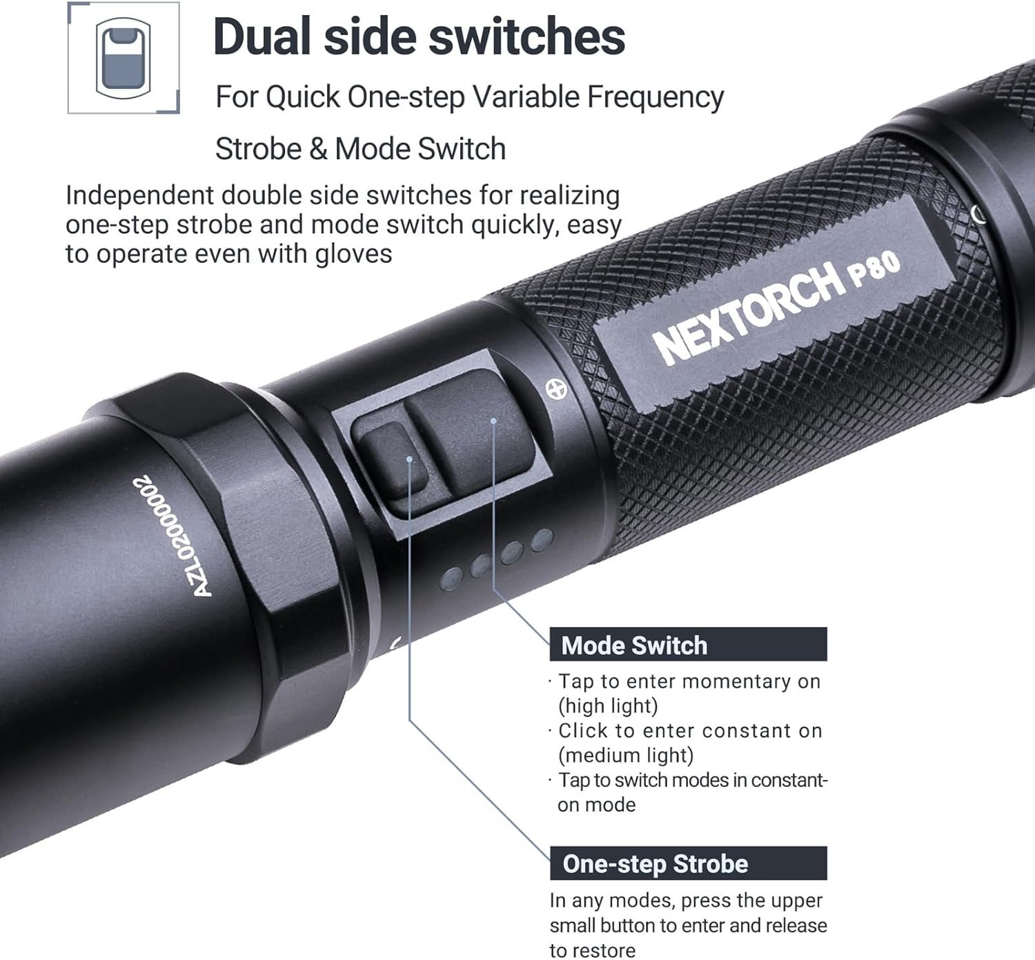 - WHAT PRODUCTS AND SERVICES YOU WILL GET:When you buy a NEXTORCH product, you will get P80 rechargeable flashlight, multi-language instruction manual, Type-C cable, hand strap, sealing ring*2.Our professional team provides five-year warranty for all flashlights, if you have any questions about the product, please feel free to contact us.