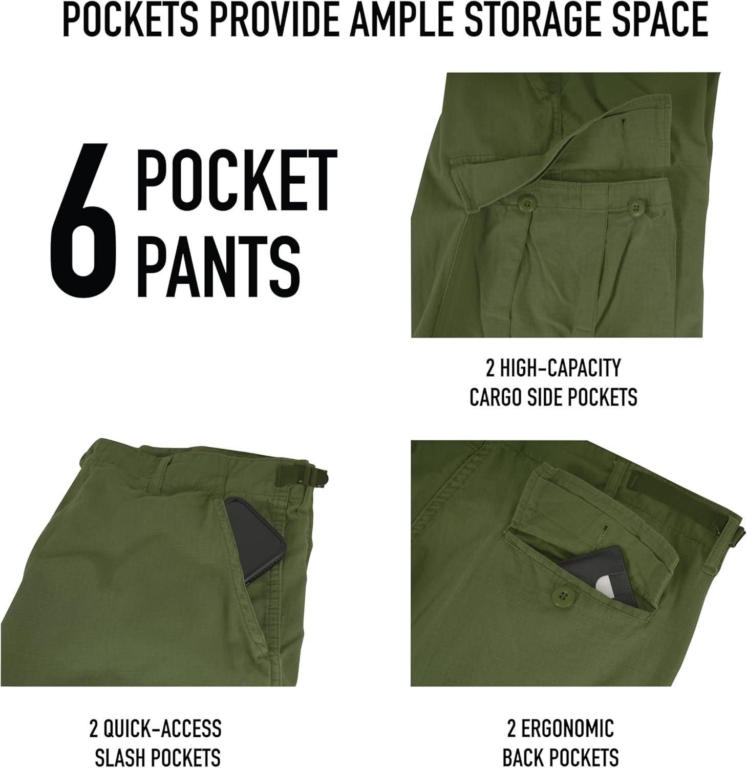 - Plenty of Pockets: Versatile cargo pants with six spacious pockets, including two easy-access slashes and four button-downs, offering all-day comfort and functionality.